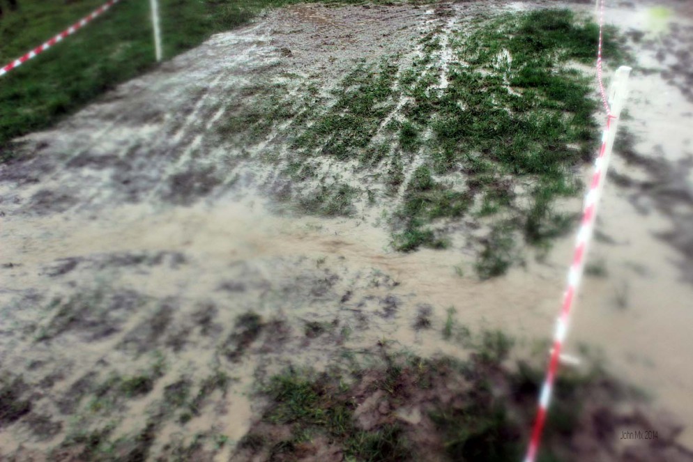 Rain fell and fell and fell and fell…. turning Wivelsden Farm into first a mud bath, then a swamp and then a river of water that flowed freely along the whole course.