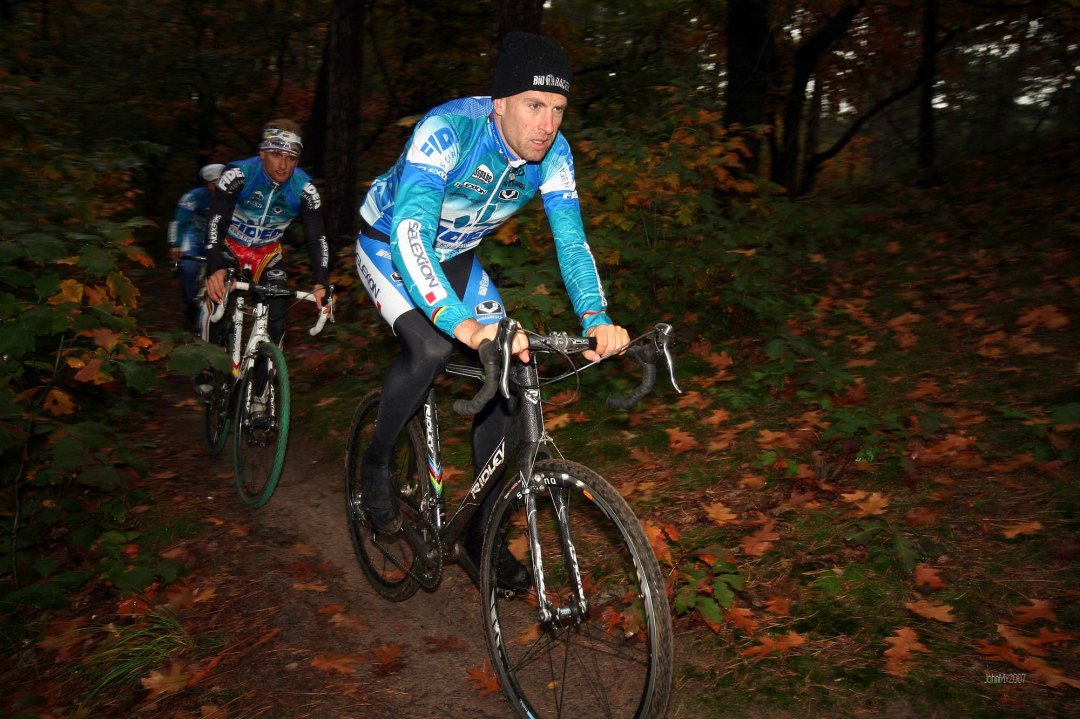 In 2007 the Fidea, now the Telenet Team, met up each week for a training ride that took in local roads and off road trails. All the team riders take part in a spin in the morning, followed by an afternoon of massages, exchanging news, picking up new kit and generally bonding. In 2007 Zdenek Stybar was new on the team and each time he joined his team mates they switched from Flemish to English, he being the only non-Belgian, and so as not to cut him out. This and many other small social graces signalled the team as a cohesive unit. Top men that day were past World Champions Erwin Vervecken and Belgian superstar Bart Wellens, the latter a star of his own reality show on Belgian TV at that time.