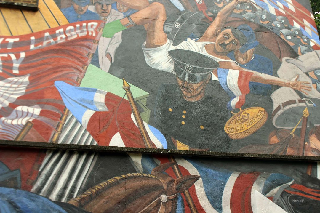 That day some 2,000 fascists dressed in black (after the Italian fascist style) had great hopes of uniting all against targeted sections of society. But these hopes were dashed when approximately 20,000 (or 250,000 in total as stated at the Cable Street mural) people blocked their way and despite the efforts of 6,000 police to allow the march to continue, Mosley and the rest had to abandon their intent.