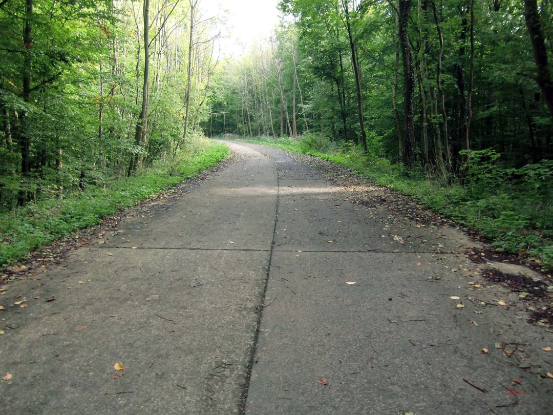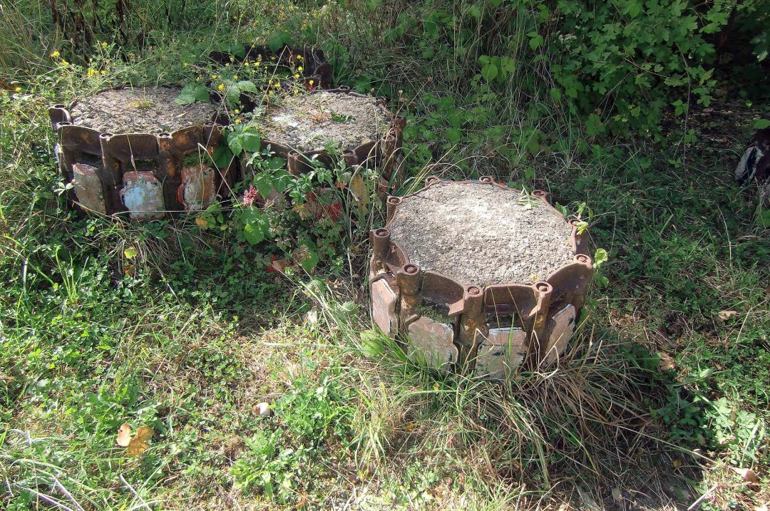 Also remaining are huge concrete shooting galleries now being overgrown in the woods.