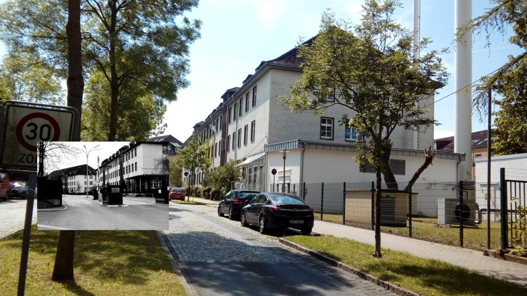 How the entrance to Zieten Barracks looks now and in the inset is how it once looked