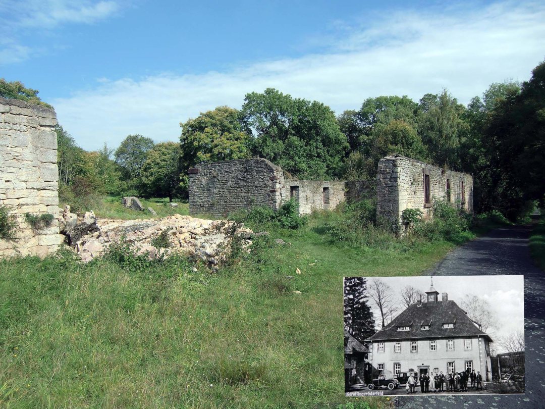 Kerstlingeröderfeld manor house destroyed by urban war games and how it looked inset