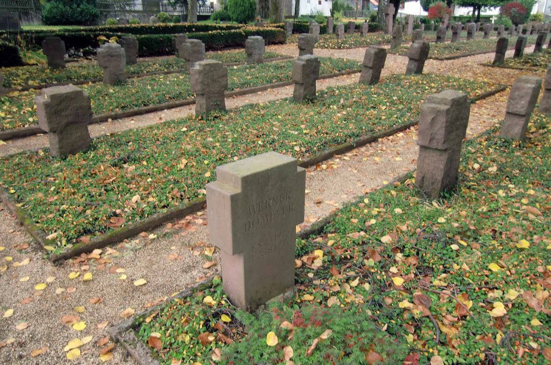 The nearby city of Gottingen contains a large number of hospitals and clinics and subsequently features a large military cemetery (as well as smaller ones). Similarly, the nearby Harz with its many clinics is pockmarked by ‘Kriegsgräberstätten’. In Sankt Andreasberg’s church yard lie the remains of 15 German and two Imperial Russian dead from WW1, and added since are 77 Germans, both military and civil, plus two Soviet soldiers from the second. Almost all of the latter died in April 1945 when the German army vainly tried to prevent the Americans from taking control of what SS Reichsführer, Heinrich Himmler had declared the ‘Harz Fortress’ (some units fought on even after the surrender in May). At the Rehbergklinik there is also a small military graveyard (Kriegsgräberstätte) containing 12 dead, one a nurse who all died in the last month of the war. In addition to the dead of April 1945, many tombstones in the main cemetery show dates of death ranging from after the surrender of German forces through to the late 40’s. As in the Gottingen ‘Friedhof’ some war victims took a long time before finally succumbing to their injuries.