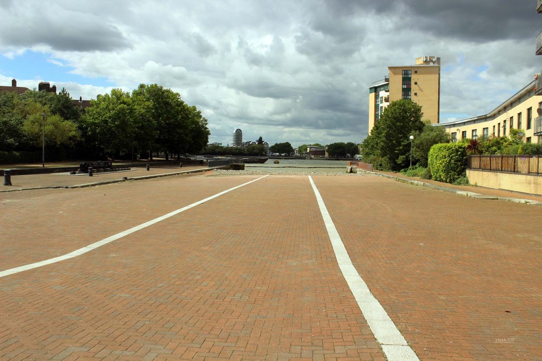 The pictures show one of the two wooden cradles still in situ at Burrell’s wharf, abandoned launch rams at Old Millwall Dock and Old Millwall Dock (which was too small for the ship) looking out into the Thames.