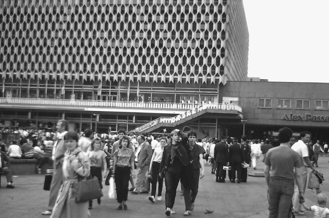 It was pretty colourful but the slide hasn’t aged well in this shot of Alexander Platz, East Berlin in 1987