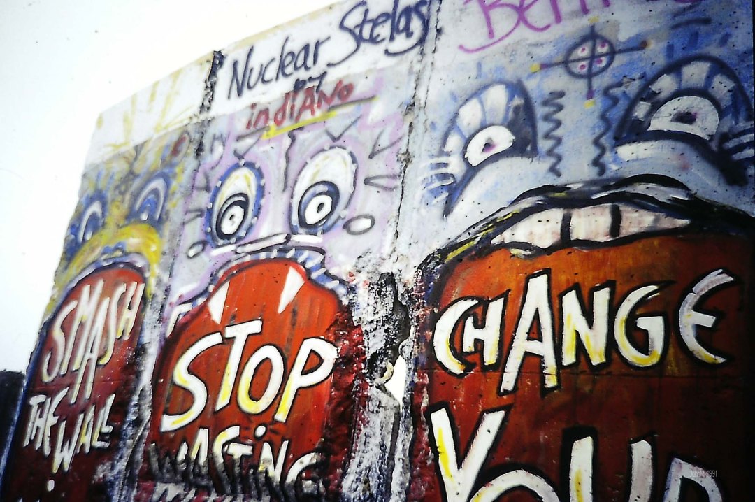 On the Eastern side of the internal border people were separated from the wall by a wide death strip whilst in the West people lived right up to it and this was a feature of Kreuzberg. Housing would be just across a street having been split apart by the border, and the wall itself became a canvas for art and the expression of beliefs.