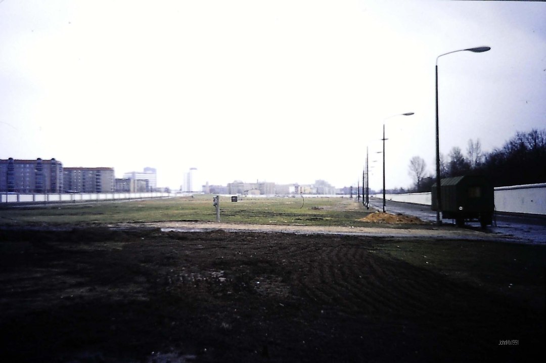 The ‘Mauer’ clearly denoted West Berlin as an enclave deep within East Germany. The Grenze or Internal Border beyond the city cut through Germany regardless of the terrain running from the Baltic Sea to the then Czechoslovakia, some 1,393 kilometres in length. It was marked on the west side by posts painted red, yellow and black with additional warning notices. Just beyond the posts there was the first East German fence, then the death strip and another fence looked over by watch towers. Estimates put the number of people who died at the border at a thousand.