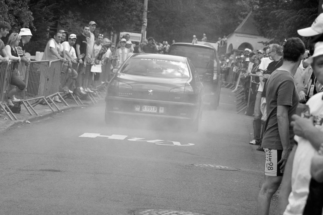 A race car burns out its clutch on the Muur de Huy – Wallonia
