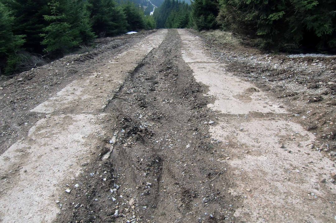 The Stein road comes in all sorts of styles here an adjoining service road is fashioned with the nasty slotted version and is ‘filled’ thankfully with mud.