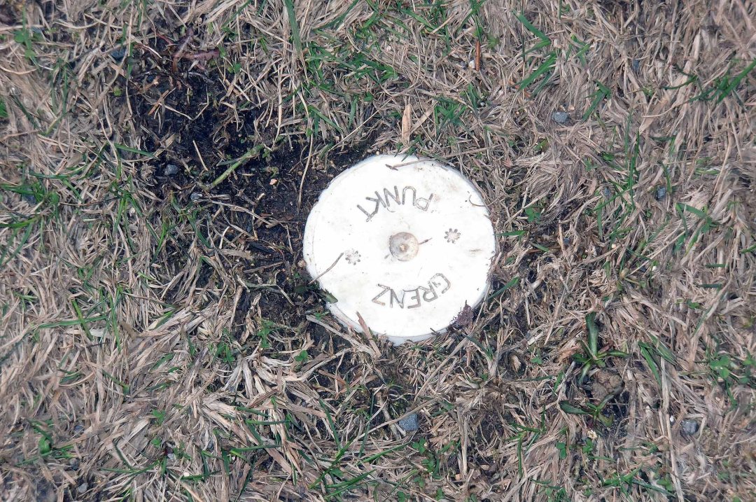 A small disc marks the border – The Grenze was marked on the west side by posts painted red, yellow and black with additional warning notices. Just beyond the posts there was the first East German fence, then a death strip and another fence looked over by watch towers. Estimates put the number of people who died at the border at a thousand. Beyond that was the concrete road used by the East German guards to move along the Grenze.