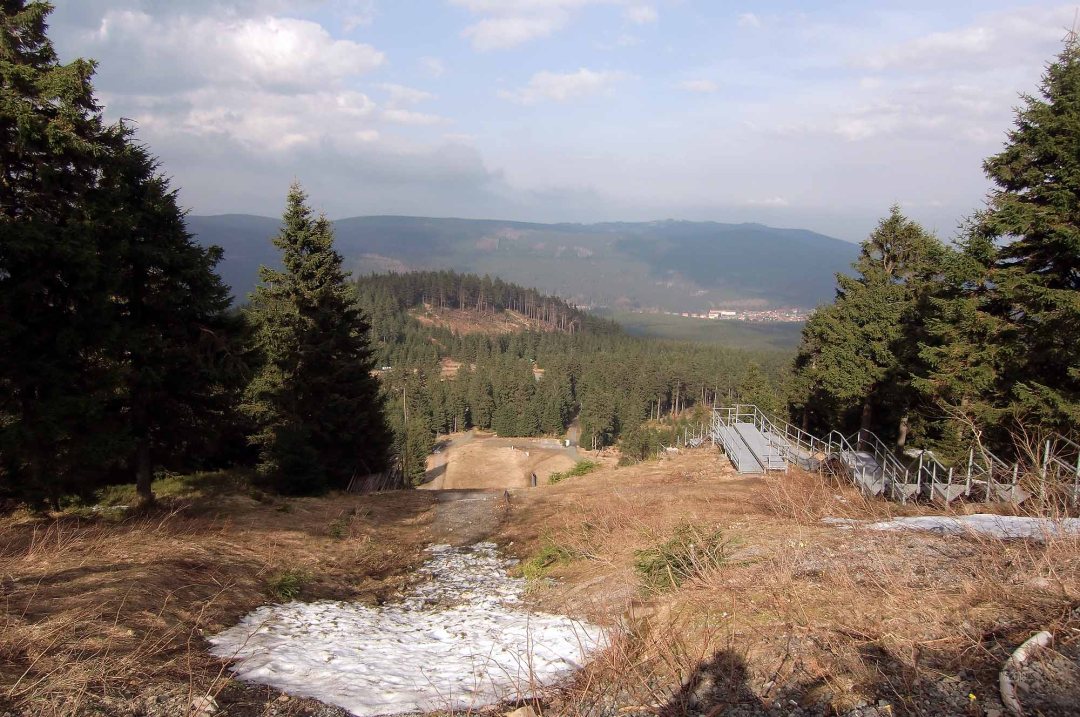 The bottom of the now demolished ski jump and behind the camera is the Grenze.