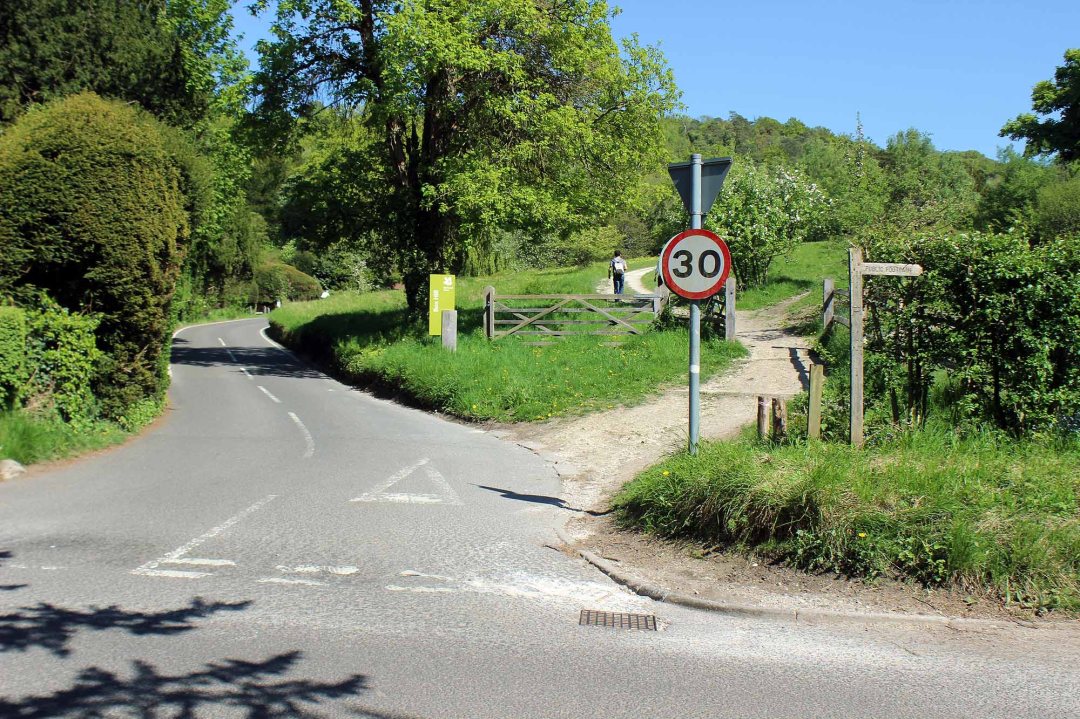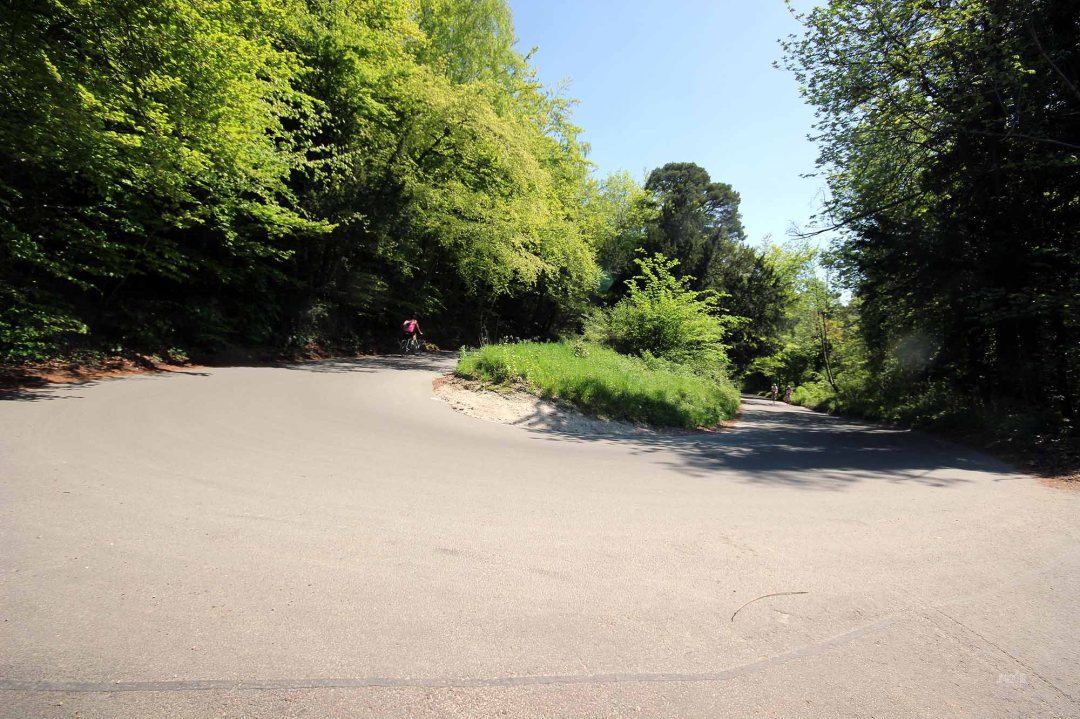 The start of the climb of Box Hill, to the right is the harder off road ascent – sort of straight up rather than wiggling your way to the top