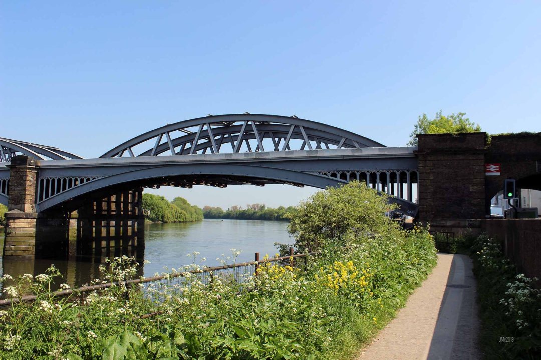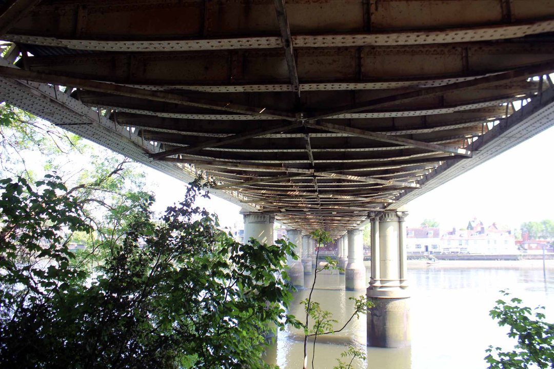Kew Railway Bridge when coming from Hampton Court. It’s a listed bridge featuring what looks like a Gothic style south riverside bridge footing.