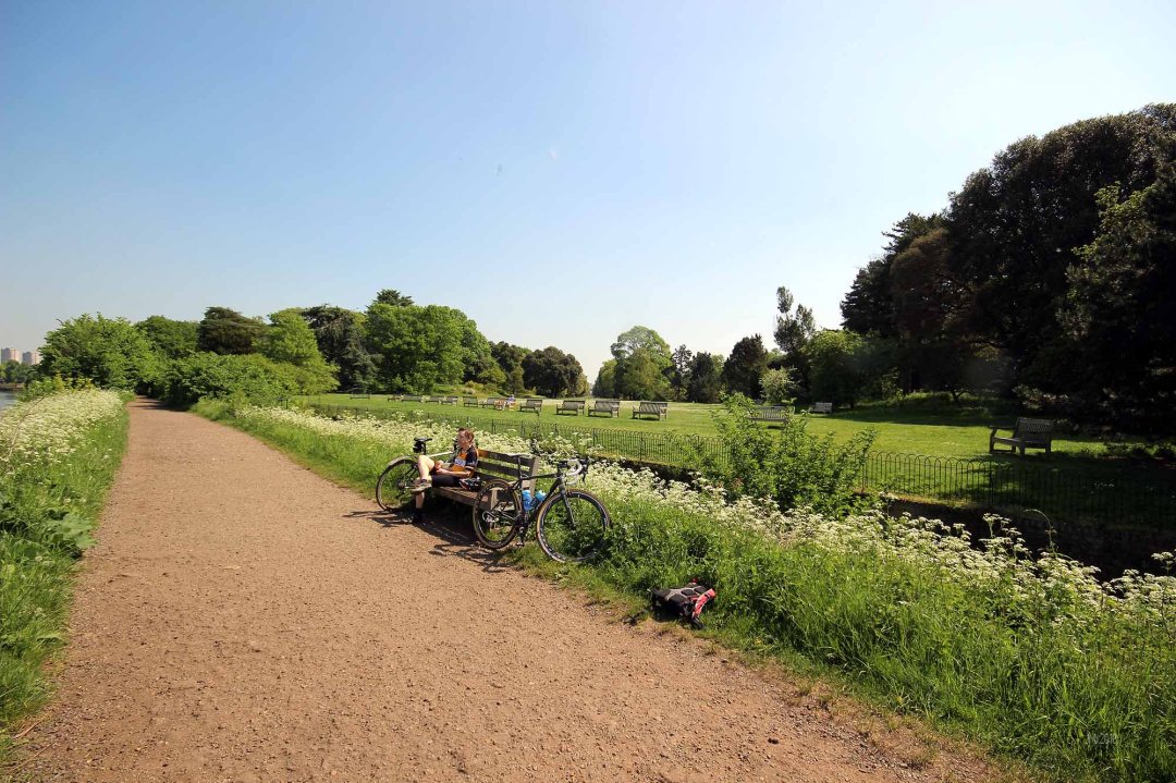 The River Thames towpath gravel cycle ride from Putney to Hampton court is just under 26 kilometres long and can be completed in a hour and a bit (plus the time taken to get to Putney or Hampton Court) making it a convenient London ride for when time poor. I often combine it with the train (30 mins) either to go to Hampton Court or return from there.