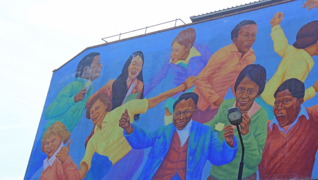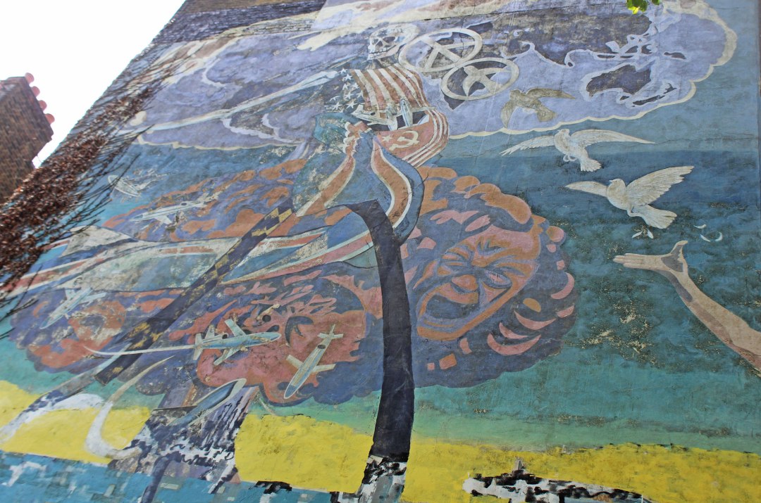 Murals have a long history of presenting a narrative, a sentiment, a joke or simply a nice artwork. They are the embodiment of art in a public space. Thomas Hart Benton and Diego Rivera reflected the narratives of US and Mexican history respectively along with many others by creating epic art works that few people could bypass without taking a look. Murals can also subvert the awful as I recall from viewing the Berlin Wall.