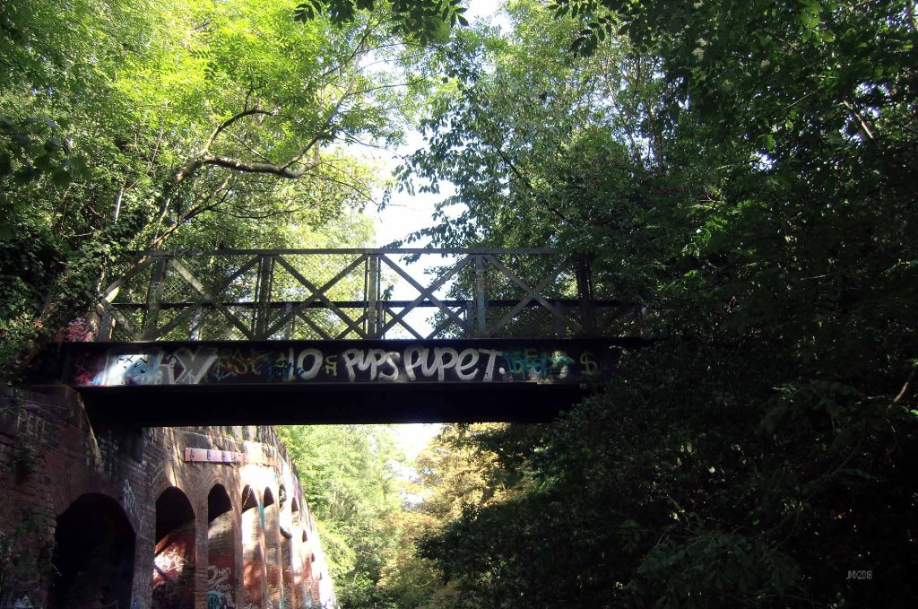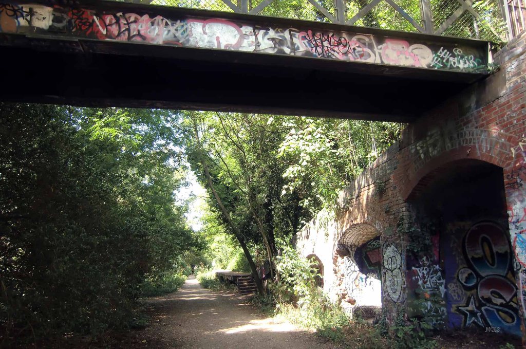 After a fight and developers repulsed the Parkland Walk was created and it follows the old railway line and is protected as a site of scientific interests. The surface is mostly gravel and flat, the route is split into two sections with the North Section stopping at what was once Highgate Hill Station where it entered tunnels under Highgate Woods, these are now closed and are a refuge for bats. To continue onto the north section, you must briefly enter the harsh and noisy world of London main roads to regain the route at Cranley Gardens. You can lessen your exposure to London traffic by entering at Gypsy Lane Gate and the ancient Highgate Woods (Saved from developers by the same acts of Parliament as Epping Forest and Highgate Cemetery is also nearby) before re-joining the Parklands Walk at Cranley Gardens, It is worth the effort because the views of London from the North Section are amazing. Cycling in Highgate Woods is banned so you need to pedal along the main road to link back onto the route.