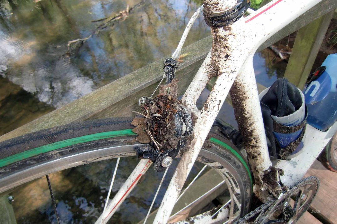 So, feeling jazzed up by the recently held Spring Classics I expressed my inner ‘Roubaixesque’ by mixing tarmac and gravel/farm tracks on a road bike. With each pedal stroke I was reliving my 2019 Paris Roubaix win (dream on indeed!). My only change to this bike was to fit a set of Vittoria 28mm Pave tyres, otherwise it was as ridden in the sun on smooth roads. The art of riding a road bike on tough terrain is to be patient, be ever watchful keeping the wheels away from really tough stuff – on the Roubaix Sportive you look ahead and seek out the ‘best bits’ of cobbles to ride. Be also ready to clear out the muck from under the brakes (unless you have discs). Post ride my body aches more than usual as the bike/tyres offers minimum comfort from the hits of the trails or pave.