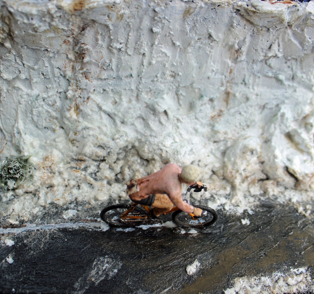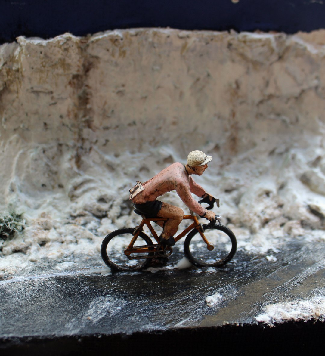 The third in the ‘It’s A Small Cycling World’ series features the leader of the Giro d’Italia riding in the mountains alongside a snow bank that was created when the high pass road had been cleared.