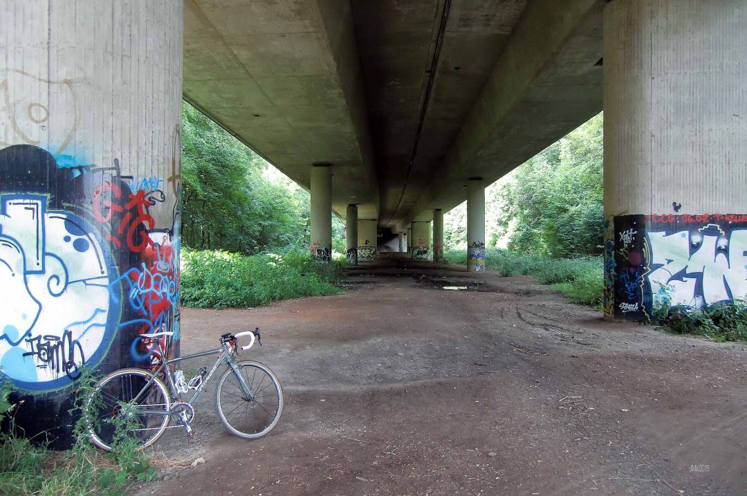We wanted a simple recovery ride and this mixed surface route took us along the valley and under the Autobahn where we found a great section featuring a narrow mud track through woods, before we branched off toward Lenglern and returned via Grone.