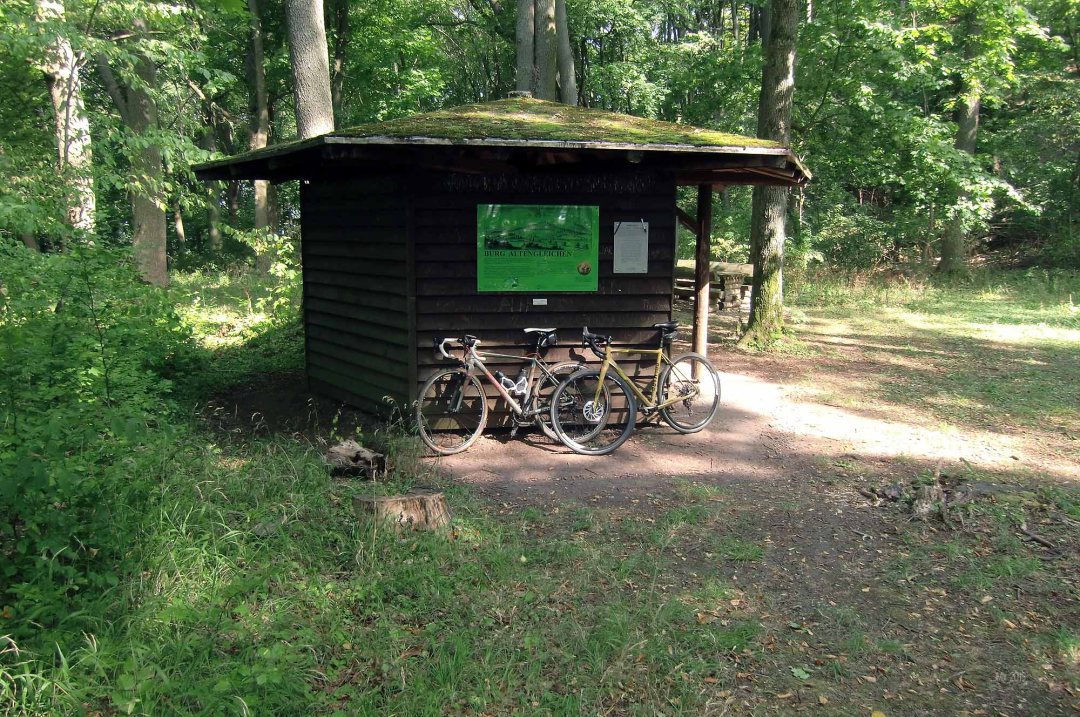 Two 430 metre hills dominate the approach to Goettingen from the south east and upon each a castle was built. We spun out along a mix of gravel, cycle paths and road, which included my favourite the Kopfsteinpflaster Carrousel to seek out the Burg Alte Gleichen (castle).
