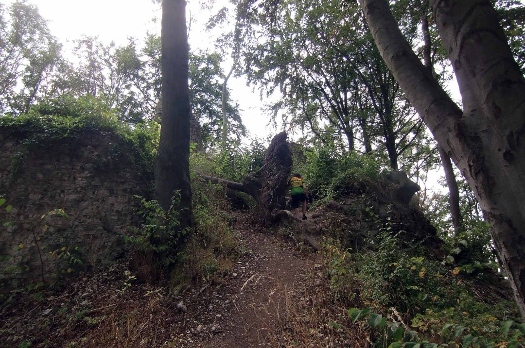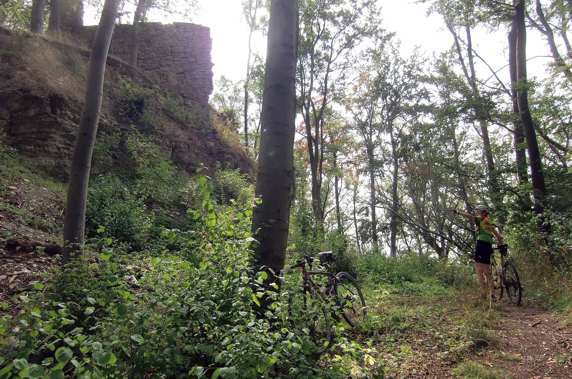 Just after the carousel we approached the Alte Gleichenwhere via a concrete Weg and turned left onto a long and very steep gravel climb. This in turn became a series of single track trails and we were forced to duck, dive and weave through stinging nettles and over fallen tree limbs.