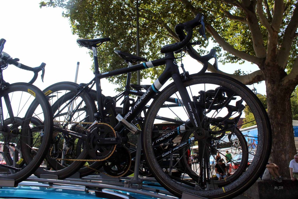 The bikes were of course fantastic to see at stage start and my mind flooded back to past races I have attended including one Giro d’Italia where Campagnolo were testing the first electric gear system (post Zap).