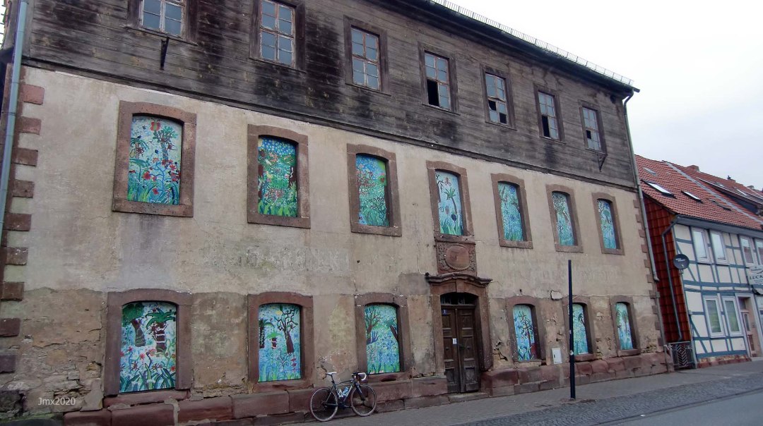 I took the train to Northeim and then rode the ten kilometres to Moringen to meet Bernd Kaminski from Hamburg who was working there. Moringen has interesting buildings some old and quite a few empty shops.