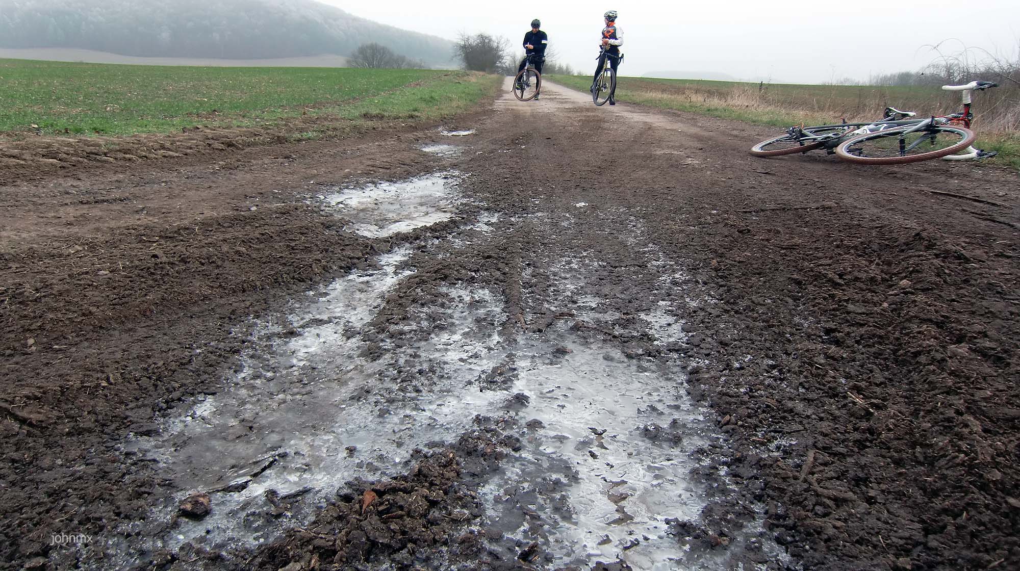 I, Andrea, Josh, Renee and Tim rode and talked about the cold and fat tyres. Renee and Tim left us after a while (they are training for the Berlin Marathon!) whilst we continued on the gravel and we saw some cool geology. It seems the area is very interesting in that regard.
