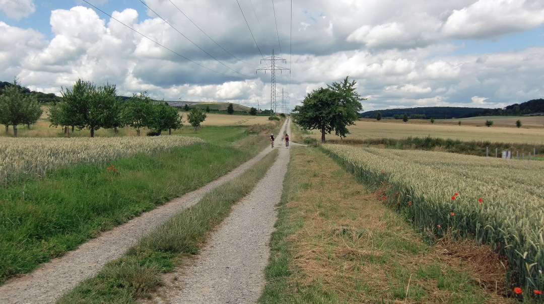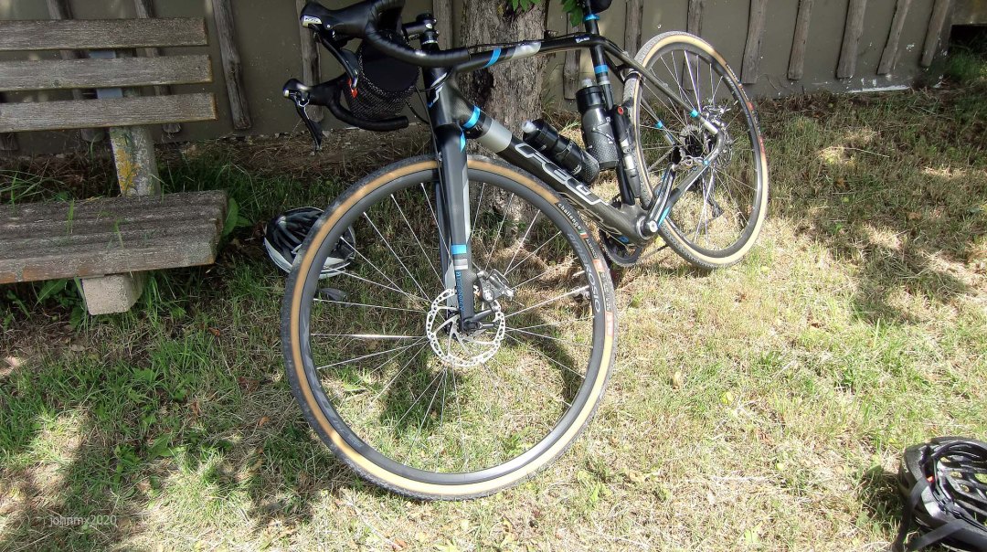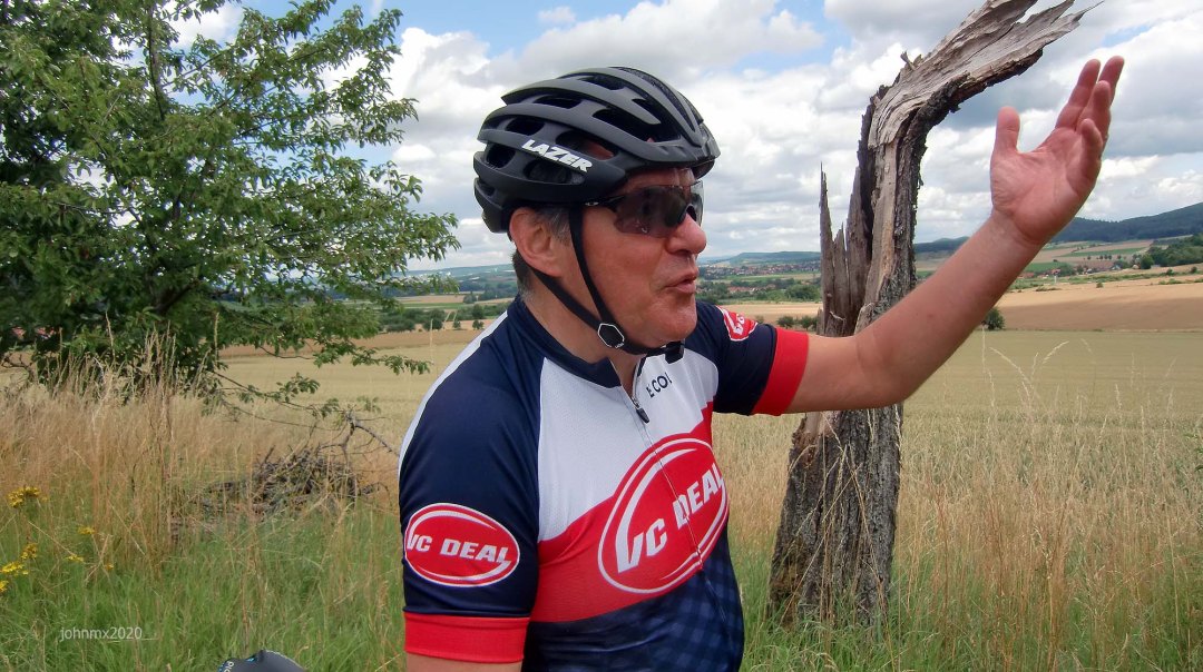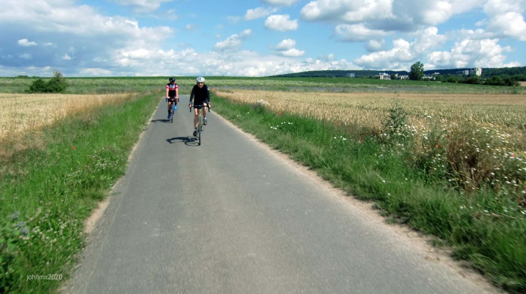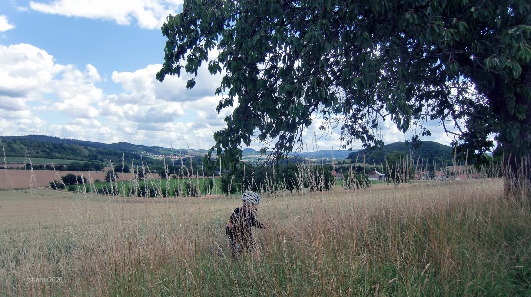 John has been riding in the super wet and muddy environs of the Harz Mountains lately and so we took him on roads with great views, dry gravel, except for a muddy puddle at the Kesterlingröder Feld Panzer Platz where his blue shoes got splashed and a warm sunshine soaked cake stop.