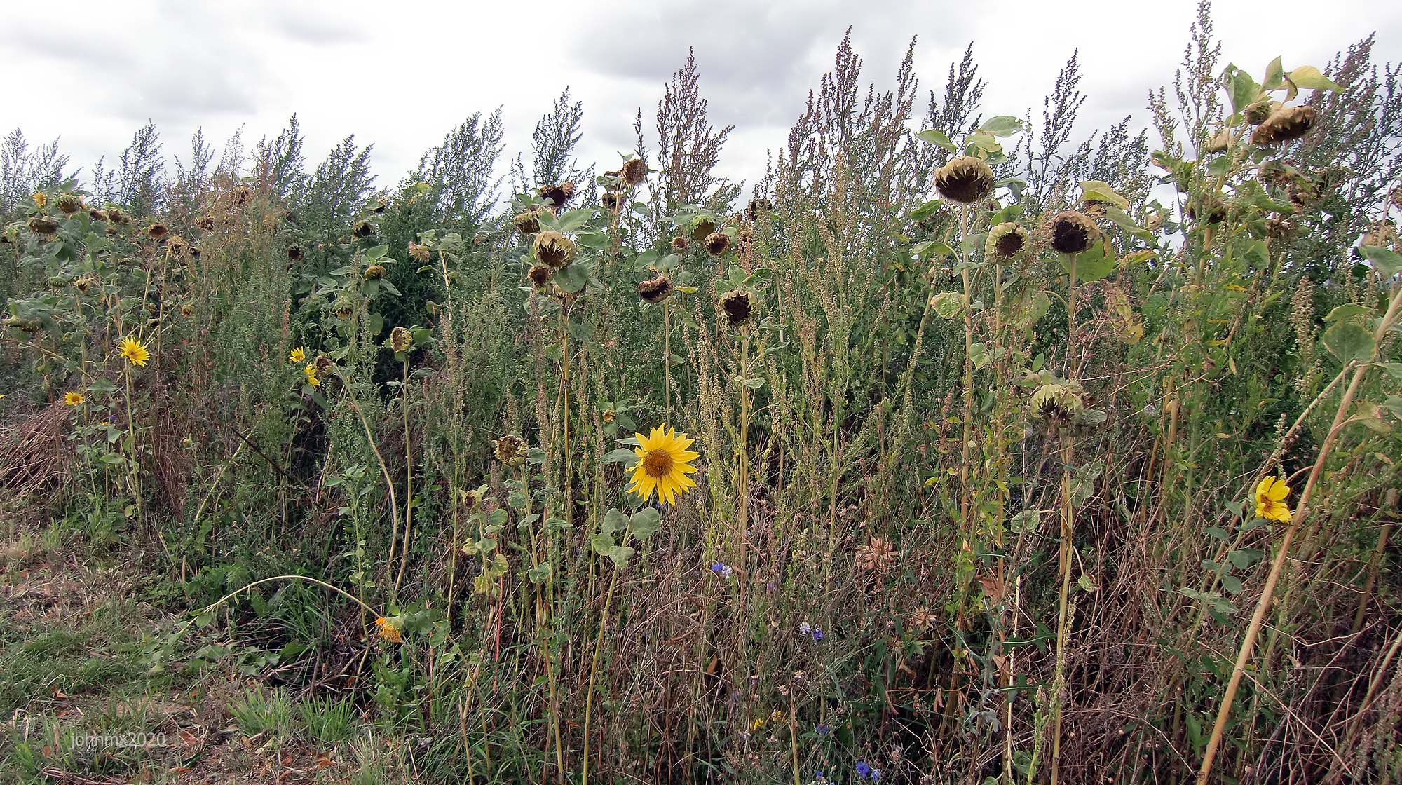 A few vibrant Sunflowers in amongst a host of those past their best is a clear sign that the summer is ending.