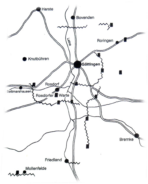 Wenn man weiter zurückblickt, hat die Göttinger Gegend, gelegen in der Mitte Europas, das gesamte Spektrum von Handel, Konflikt und Krieg durchgemacht. Sogar die Römer kamen bis zum Norden der Stadt. Göttingen liegt im Leinetal, was die natürliche Marschroute für eine Invasionsmacht darstellt. Die letzte solche war die U.S. Army im zweiten Weltkrieg. Sie focht sich von Frankreich aus bis Göttingen durch, von dort aus in den Harz und dann gen Osten bis Leipzig.