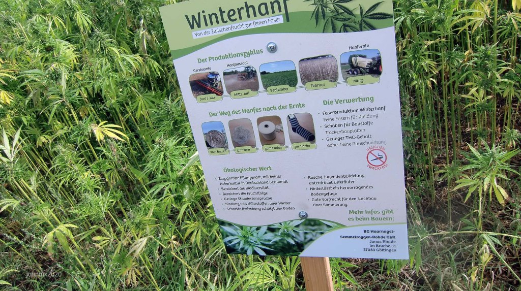 On route Sunflowers are back in flower. Also, there is Hemp growing in the fields and as the sign says – good for wearing and not for smoking.