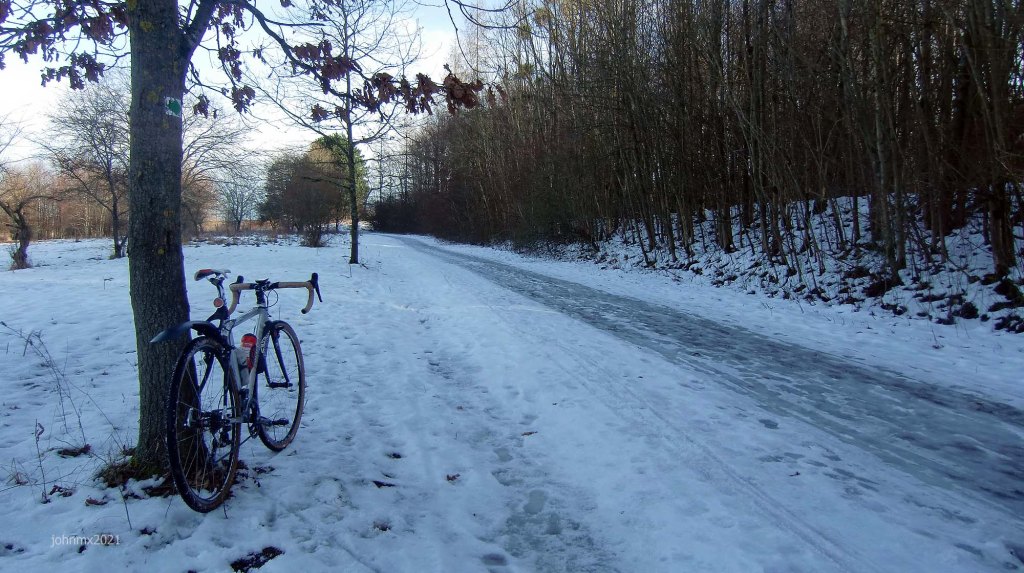A 30km ride – Including the cobbled climb of Zieten Terrace, a snow blanketed Kesterlingröder Feld (although thawing and which acted like Velcro) and a long snow free descent into the Leine Valley.