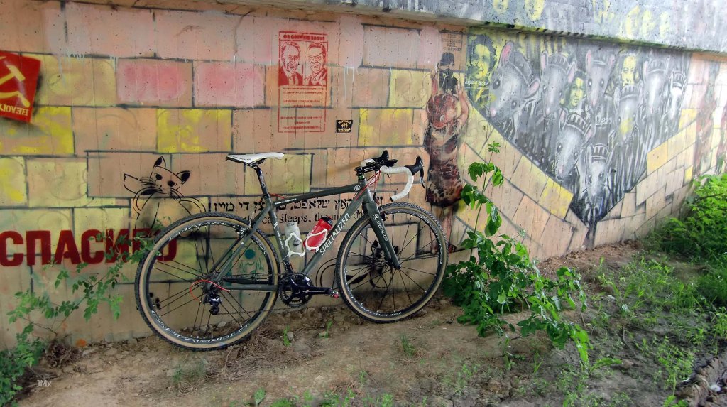 We mixed asphalt, betonweg and gravel on this ride meeting Ray at the Leine River under a railway bridge, come graffiti art gallery.