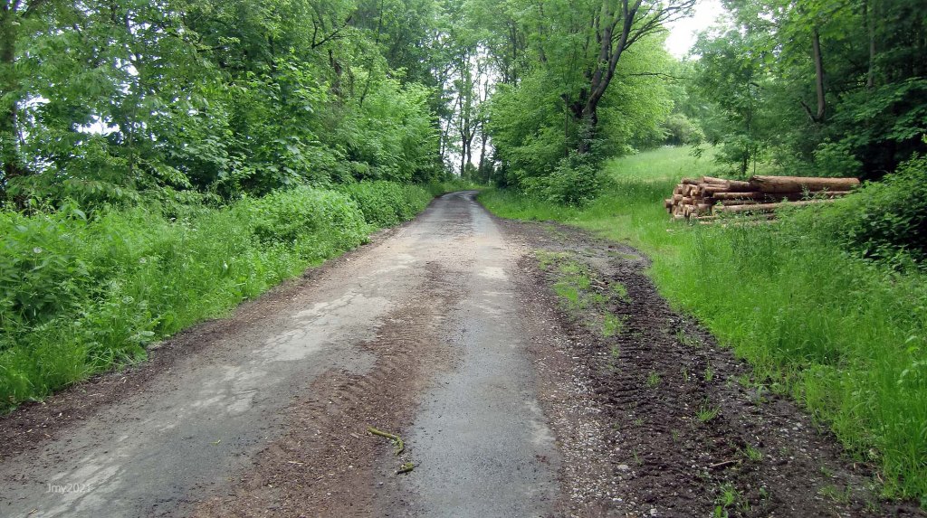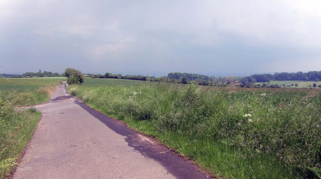 Once off the Dransfeld Ramp I picked my way along waymarked roads very much short of traffic and headed toward Dransfeld. At Varmissen I scouted for a minor road and opted for a stretch of gravel to Bördel. Next, I popped onto the main road descending to Jühnde with the Höher Hagen (the highest point in the area) and the Gauß Tower above me.