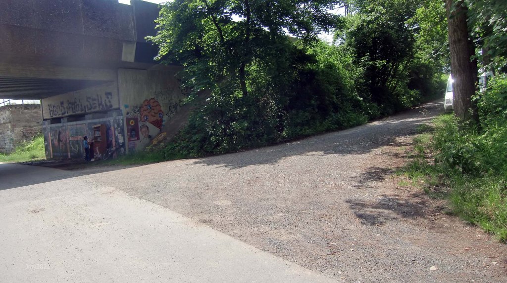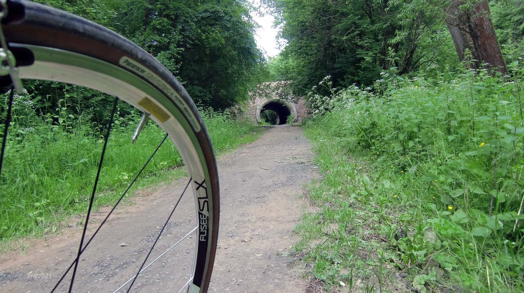 I started atop the Hagenberg at Grone where you need to look amongst the trees to find a stone memorial for the site of the Grone Castle, from there after a wee bit of urban acrobatics (including a diversion off the cycle path through a housing estate because of works) it is down to the Leine River turning right onto the Dransfeld Ramp defunct railway. This section is 10.4km. long and the gravel begins at 6.6 for 3.8km – a bike with good tyres is sufficient when ridden with care.