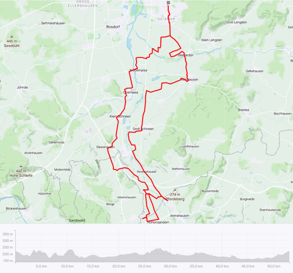 The aim of this ride was not just to have fun riding the almost white roads of the area, but also to check out a section which I wish to include in a ´long´ version of the Gö Strade Bianche. This adds three cool sections of white roads, with one bit being the now lost Arenshausen to Friedland Railway from 1876. And, because this route is meant to mimic the road race set in Tuscany it´s OK to add some smooth asphalt roads.