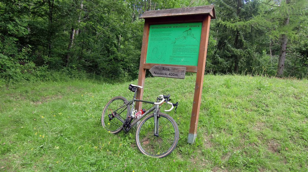 My most recent was a visit to Niedeck where I looked up at the summit of the Kronenberg but I didn´t take the gravel road to the Alte Niedeck Castle ruins because I was on my road bike. Today, I climbed to the top on my rough stuff fit machine and at the start of this tour I imagined it was April 8, 1945 and I could follow the smoke trails of a doomed B17 bomber.