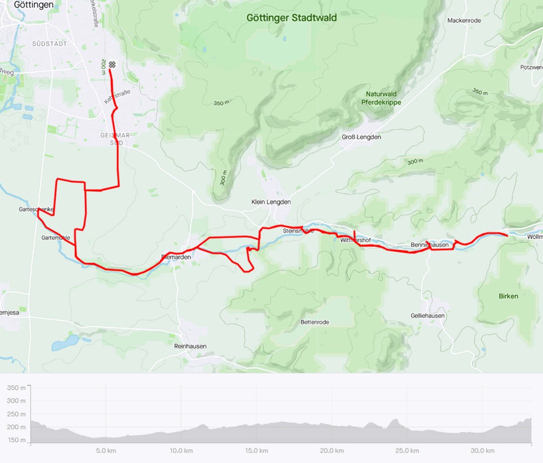 We rode out from Göttingen onto the defunct Gartelbahn to Waterloo, and no, we did not pedal as far as Belgium or London.