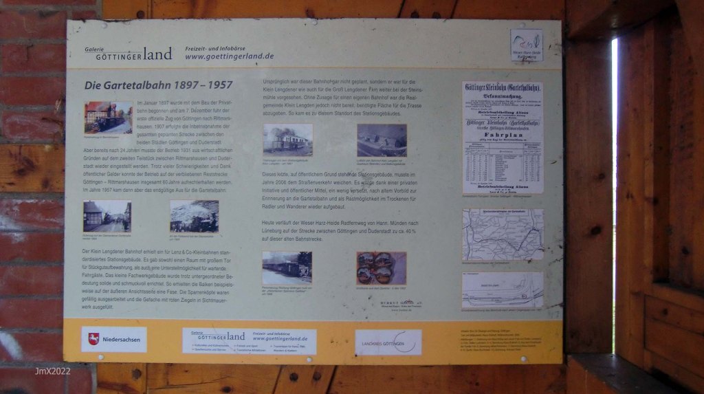 In 1896 the Gartelbahn narrow gauge railway was opened through the Garte River Valley linking Göttingen to Dudertsadt.