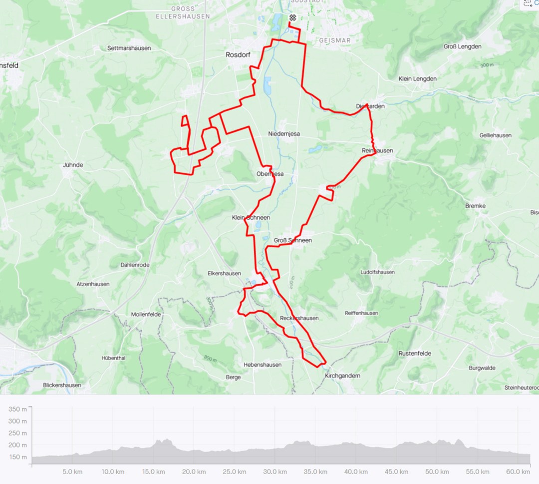 Die Tour beinhaltete Asphalt- und Betonweg-Feldwege mit Kopfsteinpflaster und Schotter, dazu Radwege und öffentliche Straßen.