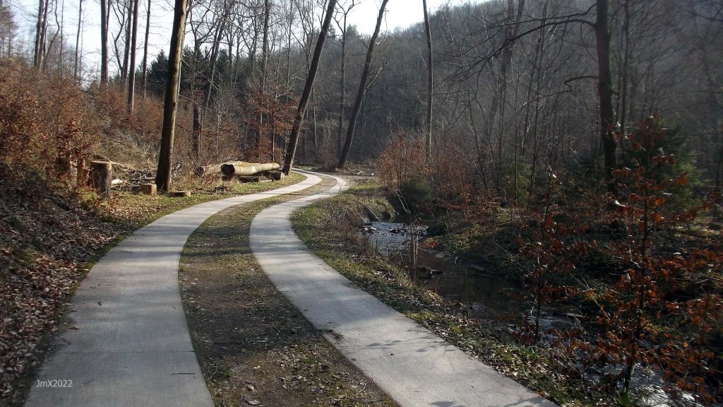 Der Großteil der Fahrt verlief auf Betonweg oder gemischten Wirtschafts-/Waldstraßen und Radwegen, die für den allgemeinen Autoverkehr gesperrt sind.