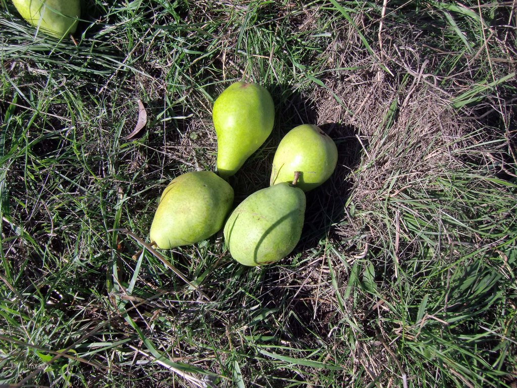 Pears fell upon us, we picked them up, and did the same with nuts and apples.