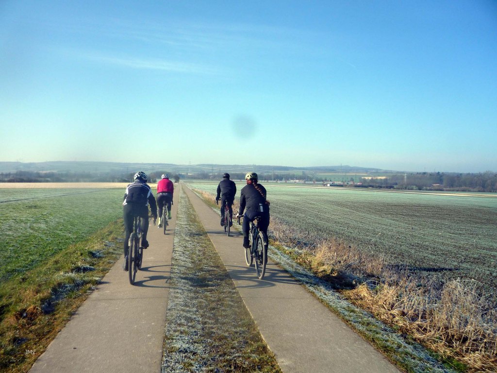 The 15th Monday informal social ride of Herbst and winter. A super cold night ride after a glorious red sky sunset, flying through the darkened villages we kept from freezing by our group warmth.
