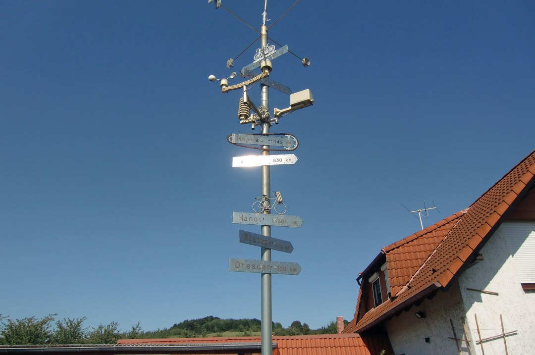 The first house in Kirchgandern out from Goettingen and once situated in the DDR has this great garden gate and a wonderful sculpture denoting the distance to Hanoi and Moscow to name two places. We wondered if the occupant had ridden to them?