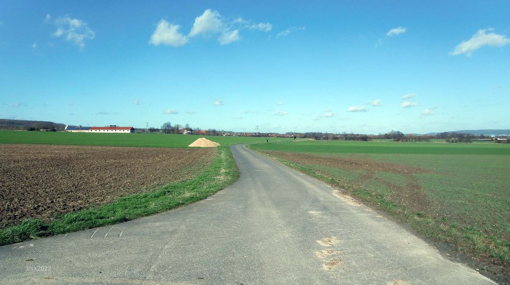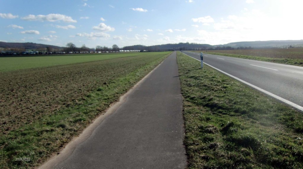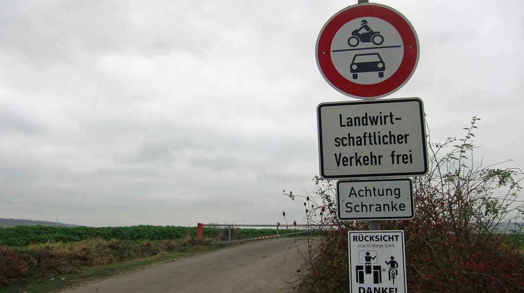 As we leave Besenhausen looking to our right we can see signs stating that this was once the Iron Curtain and remains the state line of Thuringia, and a number of information boards illustrates how this area looked before the Internal Border was removed after 1989- https: //wegdergeschichte.de/.