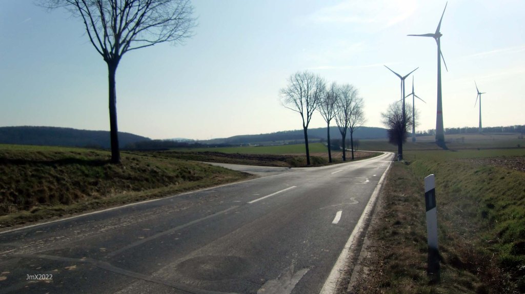 We turn left and head toward the Wind Turbines although we turn away before them.