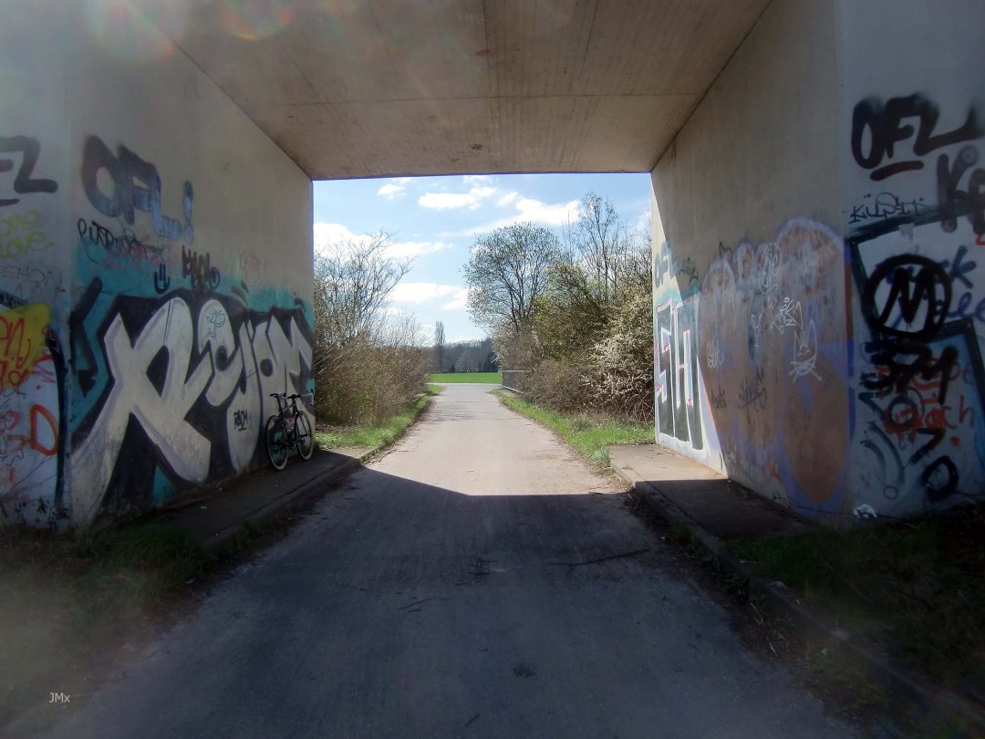 Asphalt Feldweg and a grafitti´d railway bridge – It could be on a race parcours anywhere in the Low Countries.