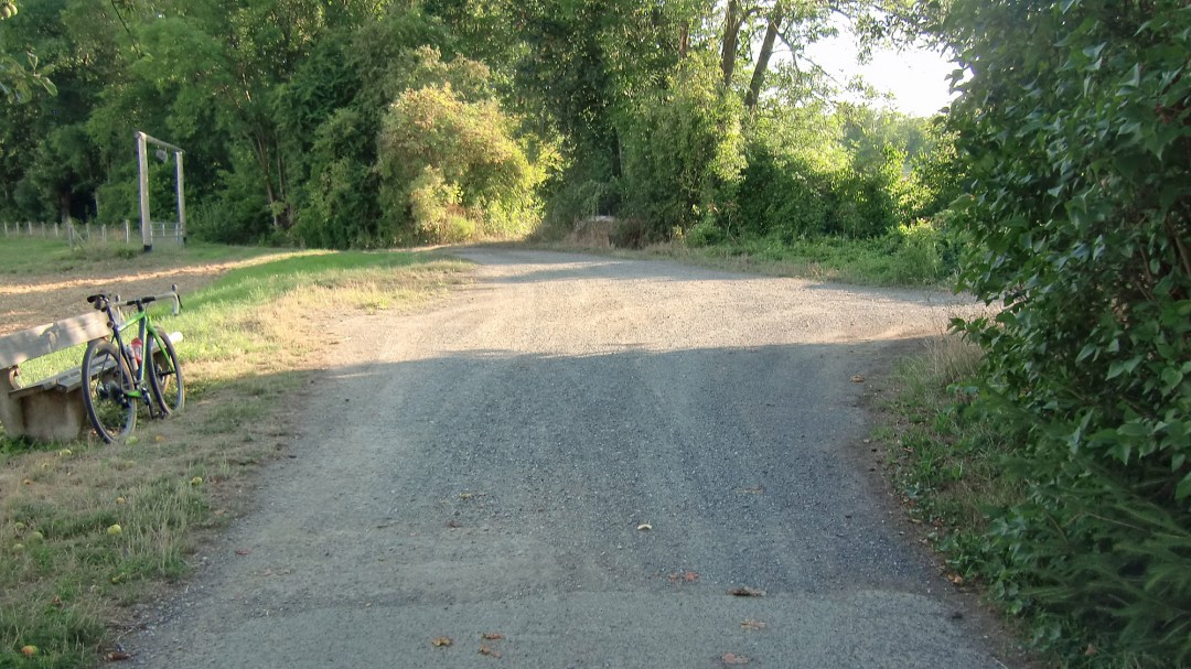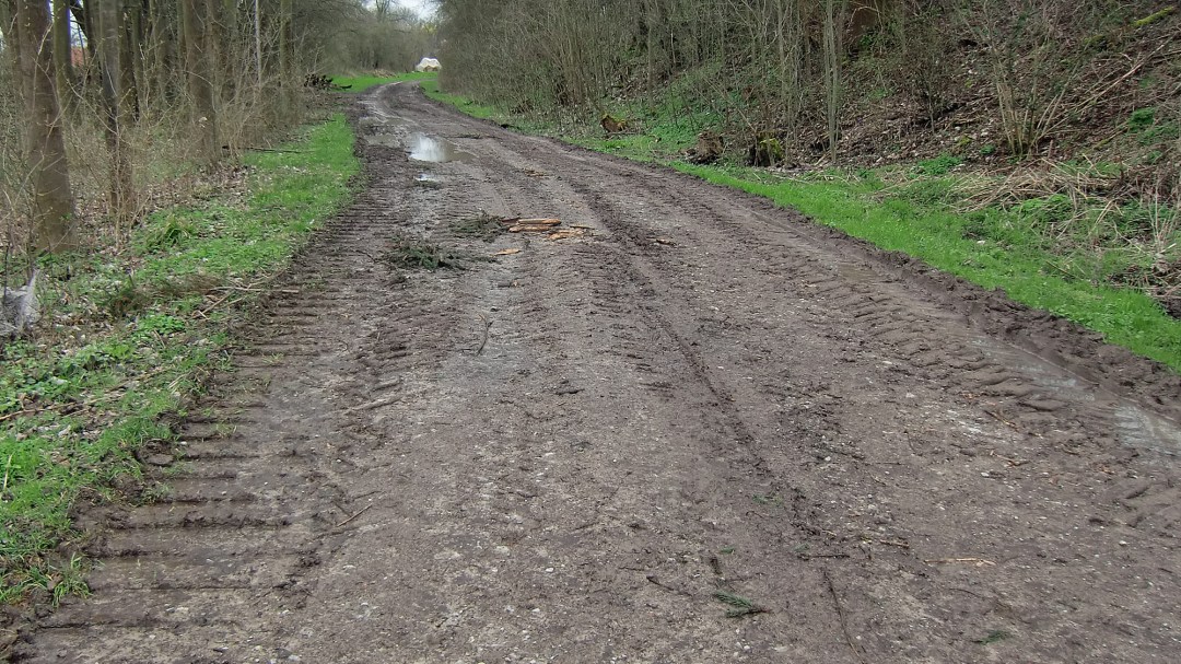 At the bottom there is a rut across the gravel and which is sometimes filled with water.