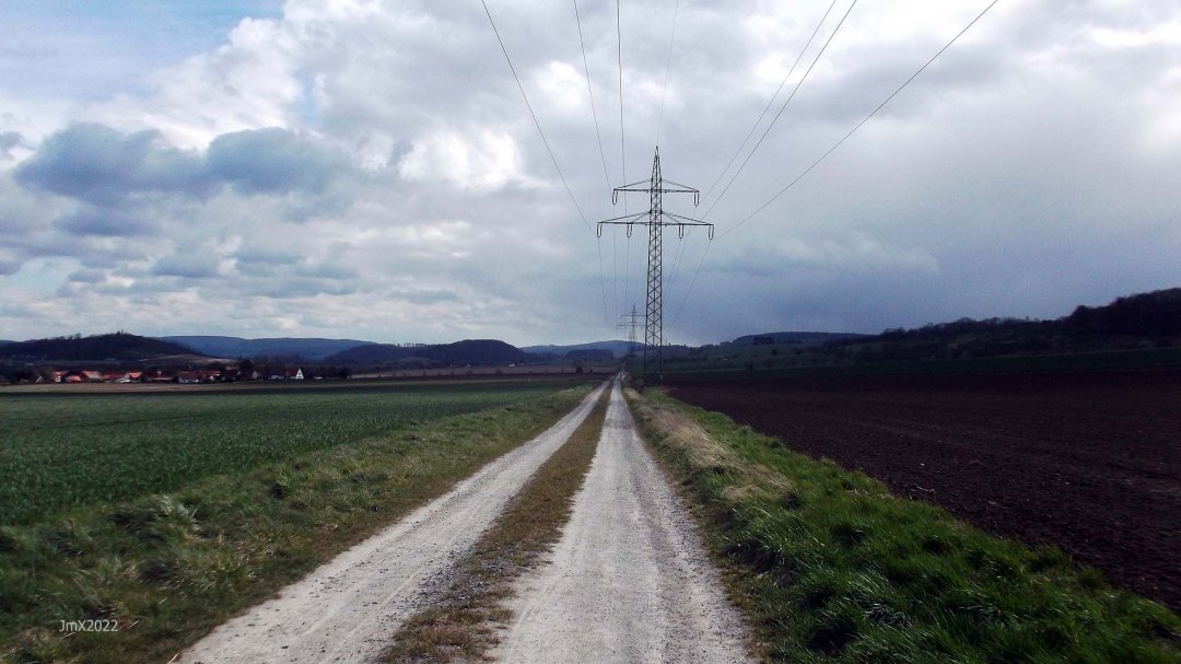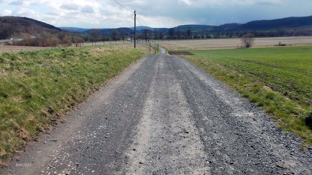 The track takes us to the high ground at Volkerode (West side) and eventually to above Ballenhausen/Gross Schneen (East side). Both heights offer cool views.